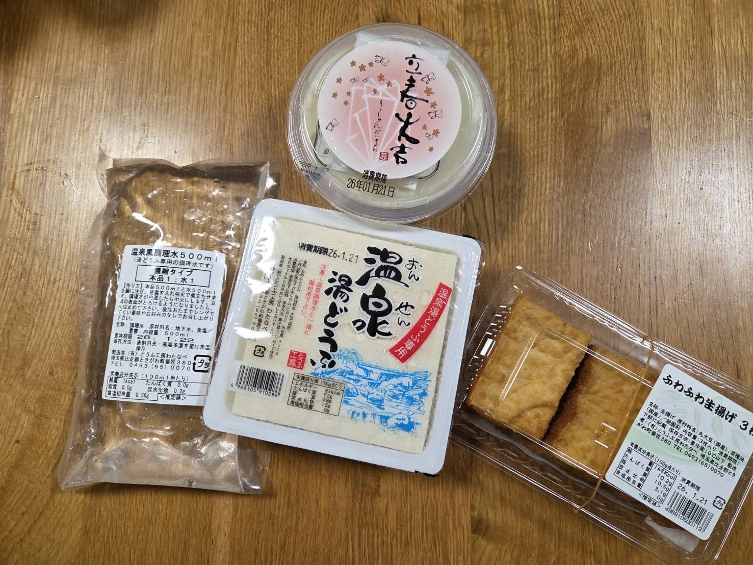 さまざまな種類のお豆腐以外にも、鬼にあげ棒👹(こくのある油揚げ)や、がんも、豆乳、おからドーナツ等が