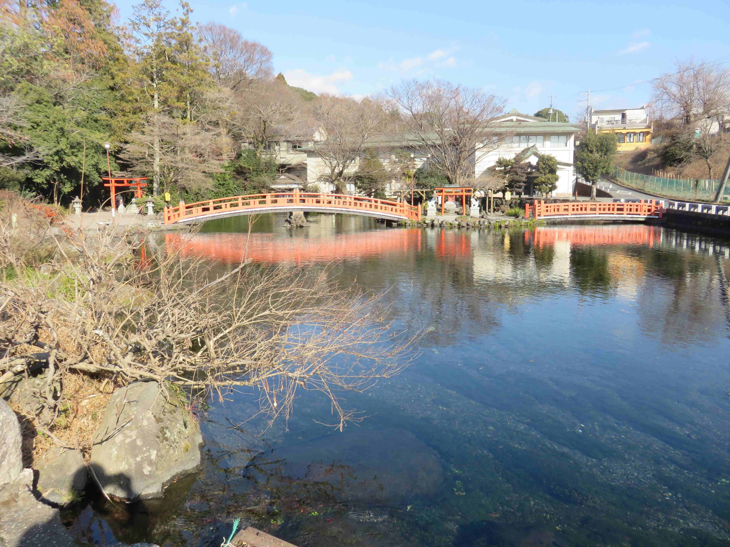 境内にある国の特別天然記念物:湧玉池です。この池は、富士山の雪解け水が1日に何万トンも湧き出ており、とってもきれいです。かつては、この池で身を清めてから「六根清浄」を唱えて富士登山をする風習があったようです。「平成の名水百選」にも選ばれています。