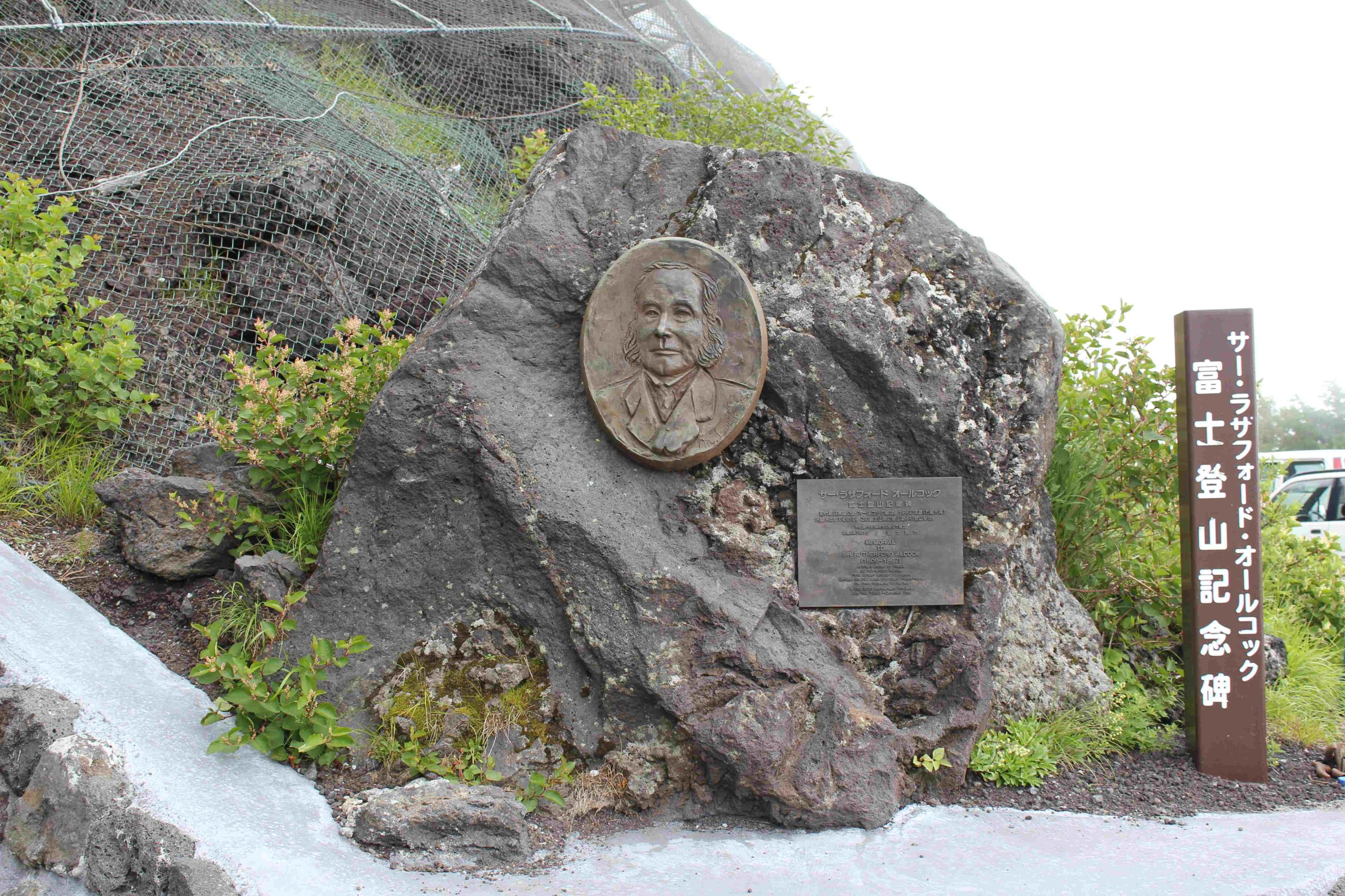 最後は、富士宮口登山道です。富士登山といえば、首都圏からのアクセスが容易な河口湖口登山道から挑戦する人が多いですが、こちらは五合目の標高が一番高いので、主要登山道の中で最短ルートに位置します。また駿河湾の海を眺めることができるので、絶景随一の登山道としても人気です。入り口には、外国人として初めてこのルートから富士登山に成功した、江戸時代の英国公使オールコックの記念碑が立っています。