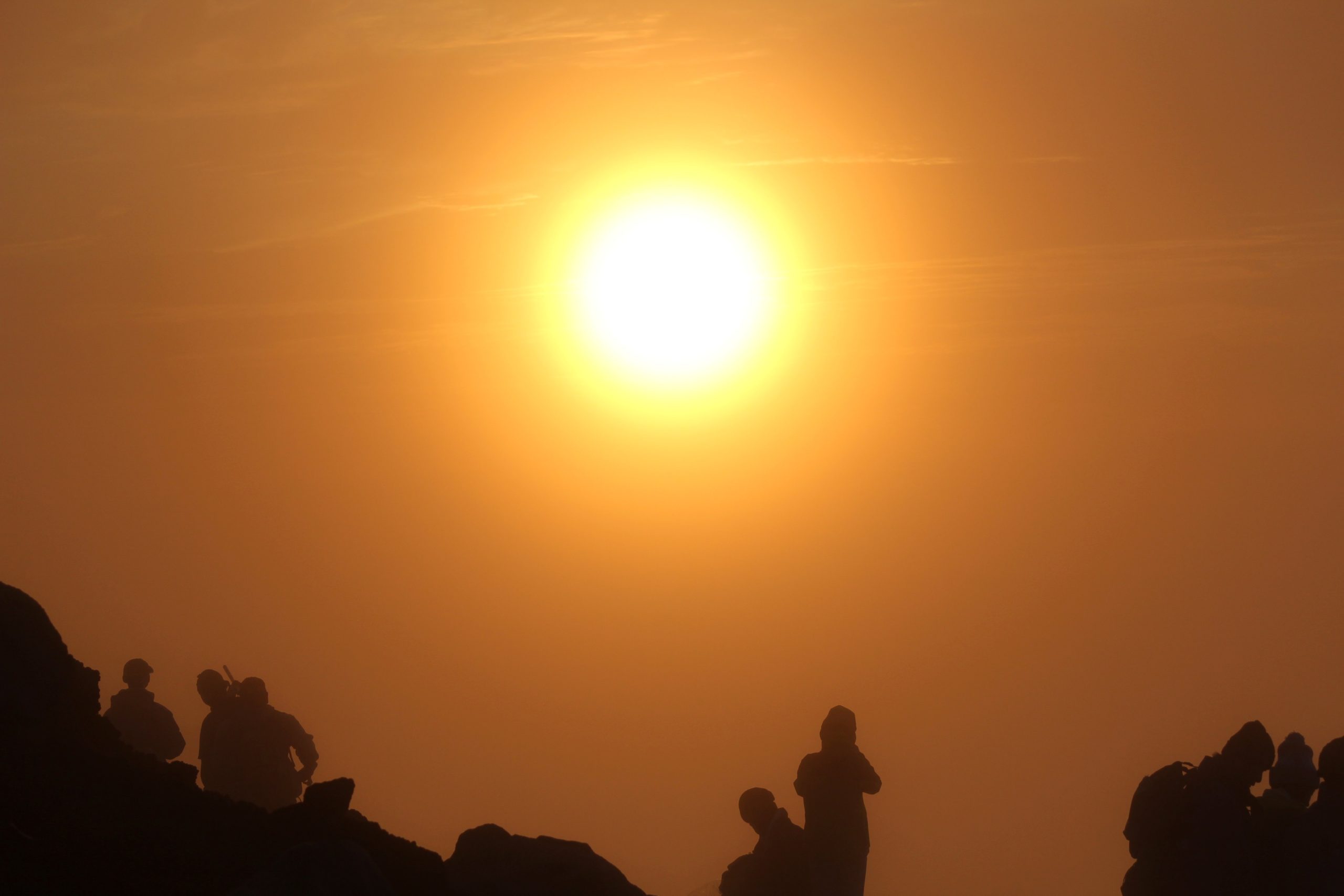 富士宮方面から刻一刻と太陽が昇ってきます。富士山頂のこの時間帯は、真夏の季節でありながら氷点下の極寒の世界です。寒さと高山病と闘いながら、その時を同志たちと一緒にじっと待ちます。